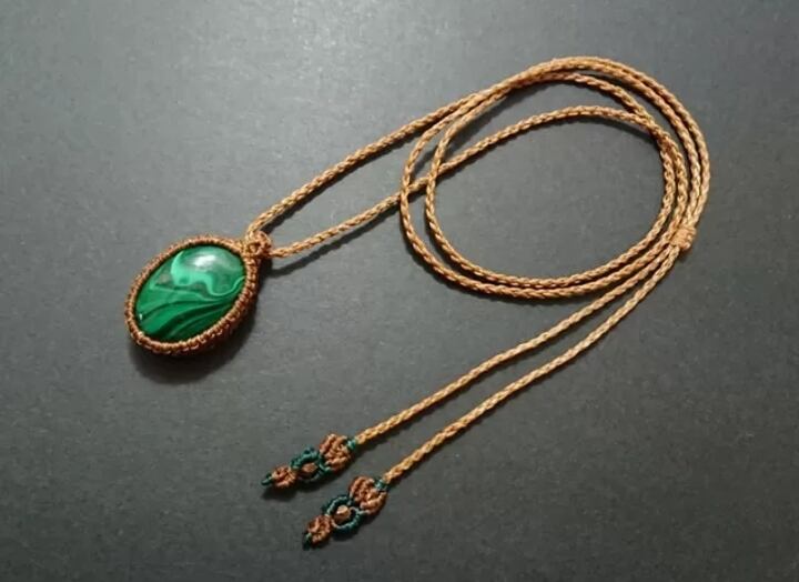 【流れるような縞模様が美しい】マラカイトのマクラメ編みペンダント