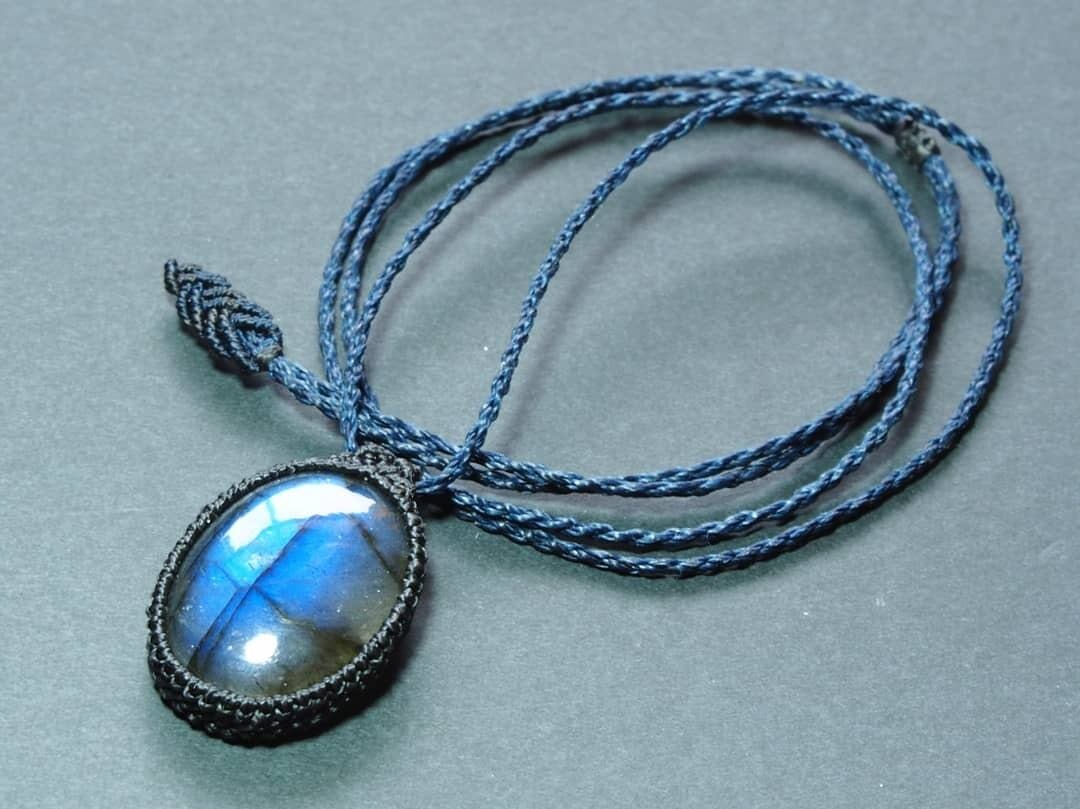 さり気無いバイカラー、ラブラドライトのマクラメ編みペンダント